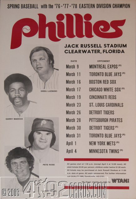 1980 Philadelphia Phillies - Ad Sign - 1980 Phillies Spring Training Schedule