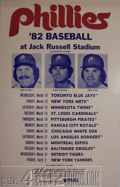 1982 Philadelphia Phillies - Ad Sign - 1982 Phillies Spring Training Schedule