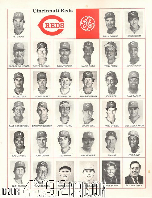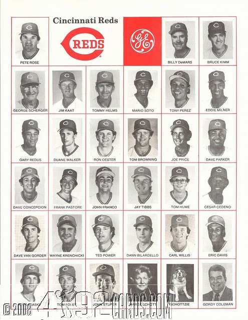 1985 Cincinnati Reds - Team Portrait Photo Sheet SGA