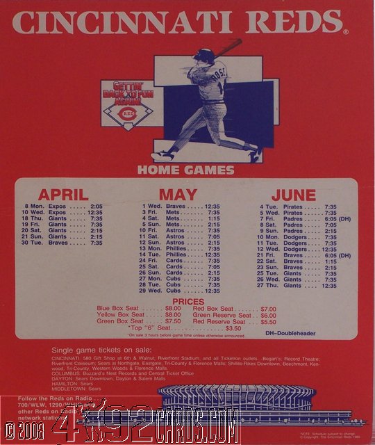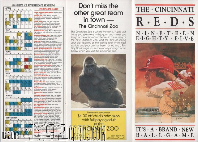 1985 Cincinnati Reds - Team Season Ticket Calendar