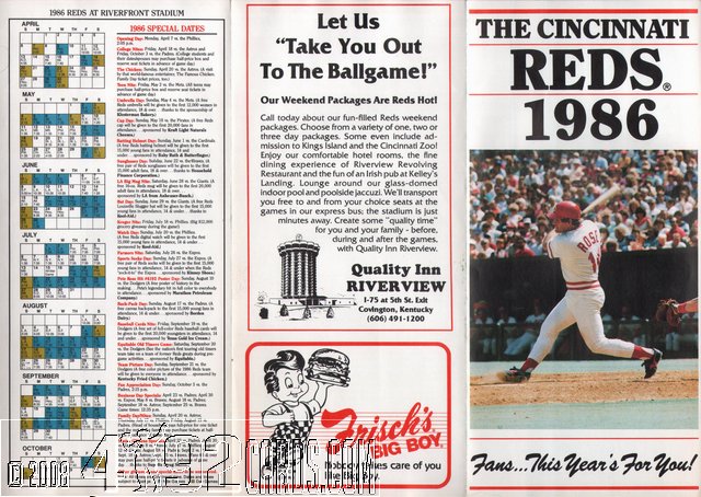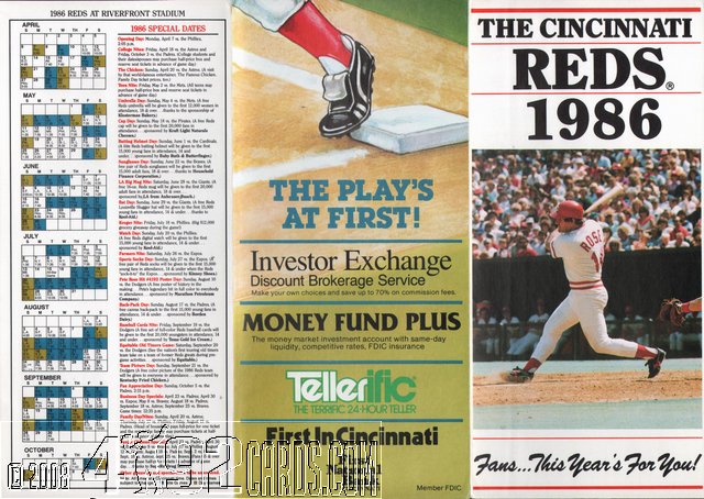 1986 Cincinnati Reds - Team Season Ticket Calendar