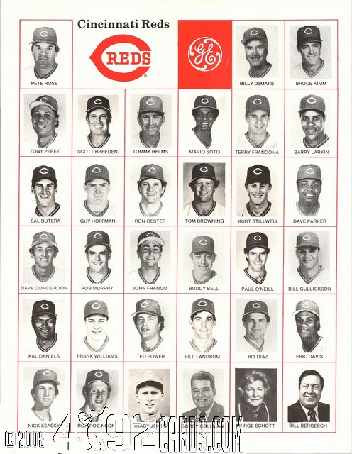 1985 Cincinnati Reds - Team SGA Calendar