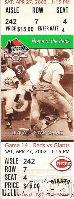 2002 Cincinnati Reds - Team Ticket Game 14 Apr 27