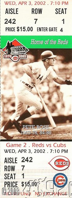 2002 Cincinnati Reds - Team Ticket Game 2 Apr 3