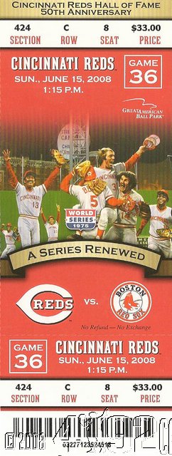 2008 Cincinnati Reds - Team Ticket Game 36 Jun 15