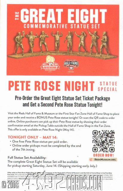 2025 Cincinnati Reds - HOF The Great Eight Statues Collection Mini Flyer Pete Rose Night