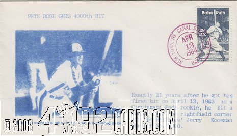 Unknown 1985 - Baseball Card Cachet Cover - 4192 Hits - Var 3