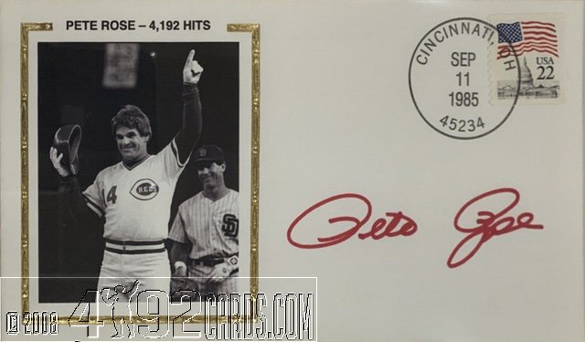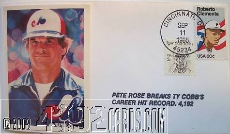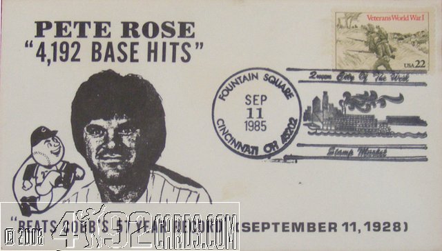 Unknown 1985 - Baseball Card Cachet Cover - 4192 Hits - Var 1