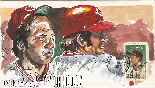 Wild Horse Cachets 1989 - Hand Painted Cachet Cover - Johnny Bench and Pete Rose