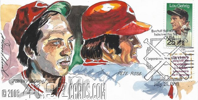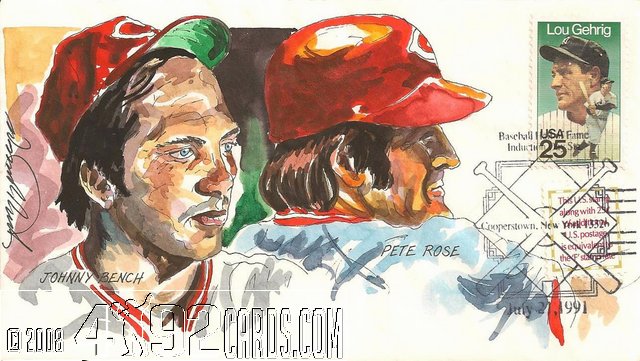 Wild Horse Cachets 1991 - Hand Painted Cachet Cover - Johnny Bench and Pete Rose to 175