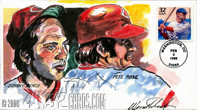 Wild Horse Cachets 1998 - Hand Painted Cachet Cover - Johnny Bench and Pete Rose Artist Proof to 25